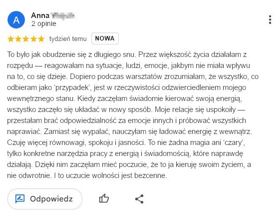 To dobrze. Nie trzeba nic „czuć” ani się na siłę wkręcać. To nie są zajęcia z „wibracji na poziomie 999”. To konkretne narzędzia, które działają niezależnie od tego, co myślisz o energii.